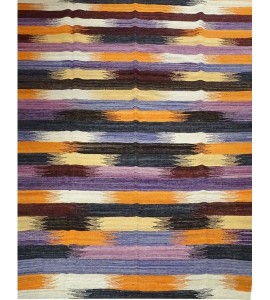Tapis kilim fait main,en Afghanistan avec ses motifs inattendus avec ses multi-couleurs,orange,lilas...