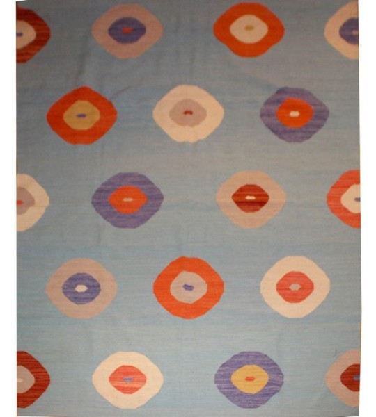 Ce tapis kilim fait main peut embellir votre intérieur avec son bleu de ciel.