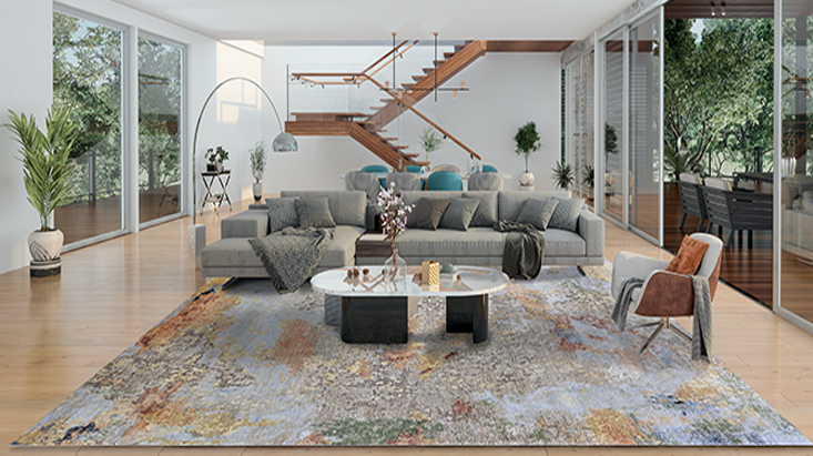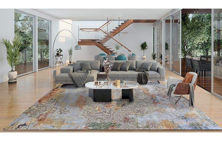 Avec ses motifs abstraits et ses couleurs chaudes pour embellir votre salon.